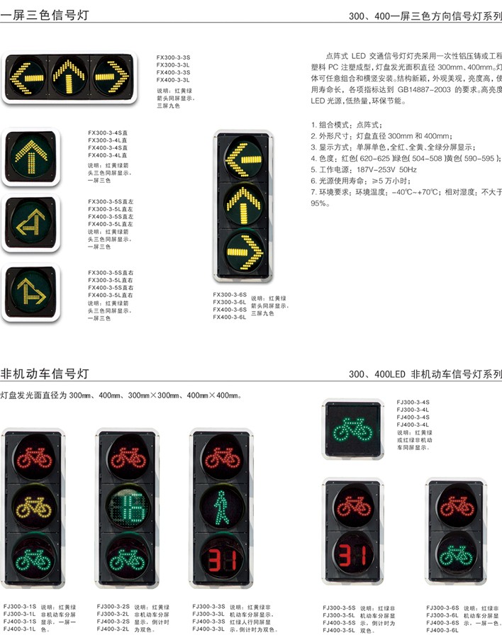 交通信號(hào)燈光源采用進(jìn)口超高亮度LED,具有亮度柔和均勻.無光暈色斑、無顆粒感.無光污染、低功率、大視角、采用恒流源,亮度穩(wěn)定無閃爍。燈殼采用一次性鋁壓鑄或I程塑料( PC )注塑成型,燈盤發(fā)光面直徑為200mm300mm.400mm。燈體可任意組合和橫豎安裝。