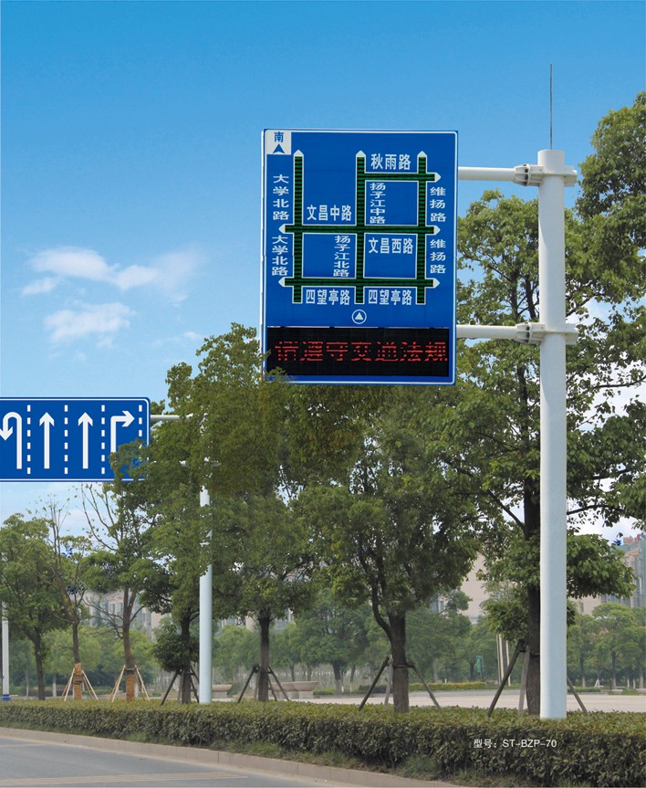 產(chǎn)品特點(diǎn):● 交通標(biāo)志牌是用來(lái)提醒、警示和引導(dǎo)交通參與者, 在行駛中根據(jù)道路情況提前采取相應(yīng)措施, 以切實(shí)維護(hù)交通安全的重要設(shè)施?!?桿件表面應(yīng)進(jìn)行熱鍍鋅處理,立桿橫臂、法蘭盤以及各種連接件采用熱浸鍍……